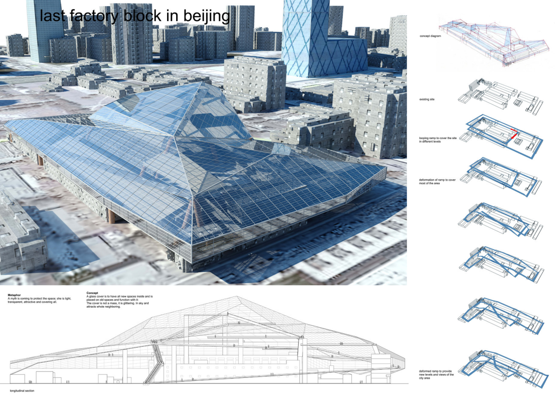 这是十年前第一届AIM竞赛的题目,也是“广义设计”理念的萌芽之地。它位于北京CBD的核心区,前身是一座老工业园区。在当时,面对周围拔地而起的摩天大楼,它的命运似乎只有“被夷平,建新楼”一种选择。