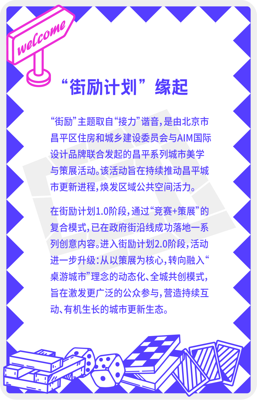 「街励计划2.0」本次竞赛以“桌游城市”为主题,将游戏设计思维和互动融入城市空间与公共服务中,通过趣味性、参与性和奖励机制,激发市民探索、社交及协作,从而提升城市活力、优化治理并改善生活体验的一种创新城市发展模式。