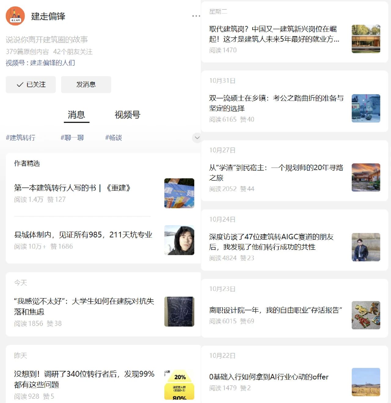 案例代表:建筑自媒体/知识博主 公众号“建走偏锋”
