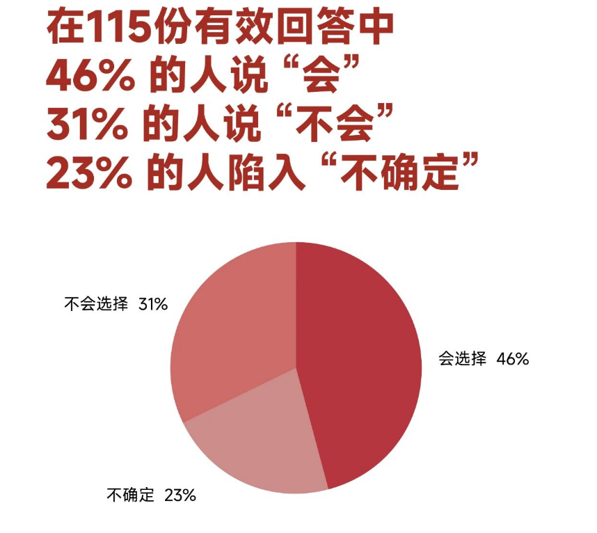 - 年龄越大,越想再来一次。41岁及以上群体中,63%选择“会”:25岁及以下的年轻人中55%选择“不会”
