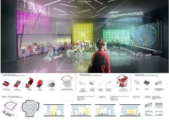在此,“空”空间本身的普遍性,与不同的空间限定物所带来的特殊性,同时被安置在这一设计中。人们在使用该空间的某一功能时,其他功能也以碎片化的形式同时出现在空间中,无论这一空间以何种功能出现,人们都可以意识到它的其他可能性,促使人们主动与空间互动,改变其功能。