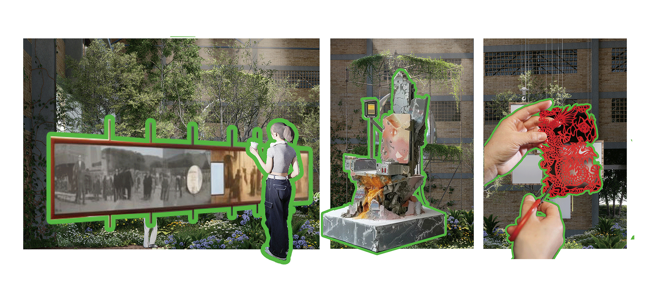 本次获奖作品《光合沸土》是受到场地中土地和废墟被植物入侵景观的启发,通过种植大量植被与废土共生,意在通过自然力量唤醒曾经受到严重污染的土地,传递对工业污染的反思并构建一个兼具文化与商业多样性的空间。